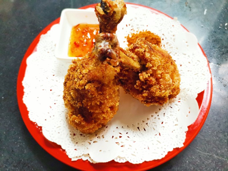 6:小火,等炸定型后翻面炸,因为鸡腿比较大,要确保肉熟。