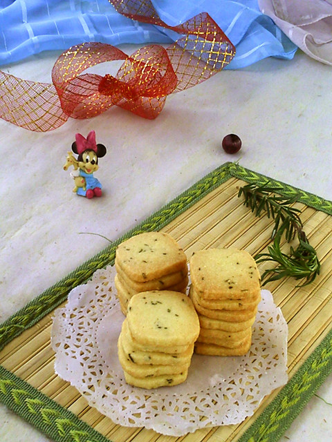 新鲜迷迭香1.5克;糖粉25克;低筋粉50克;小苏打1/8小勺;全麦粉15克;黄油38克;蛋白5克;