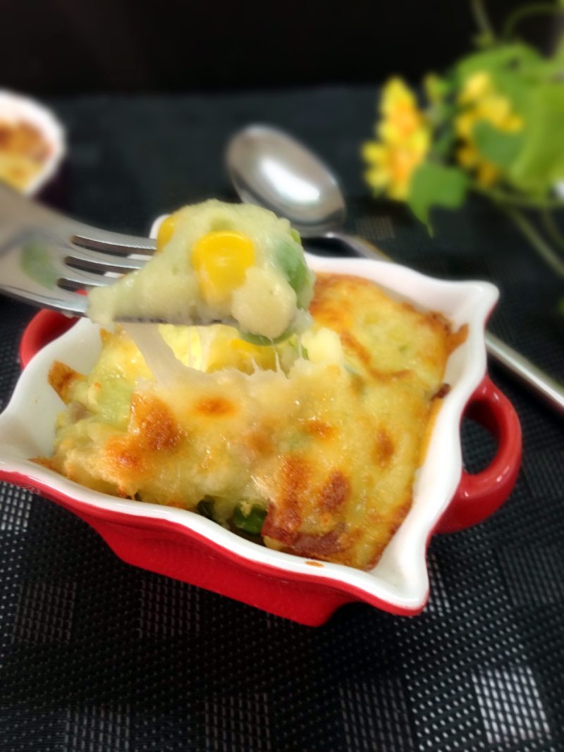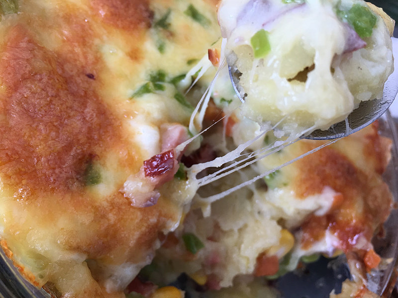 13:烤至马苏均匀包裹土豆泥,颜色金黄即可。
