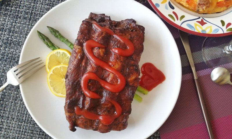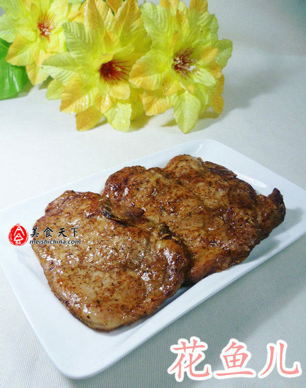 5:令人垂涎的烤猪排新鲜出炉。再撒些黑胡椒粒