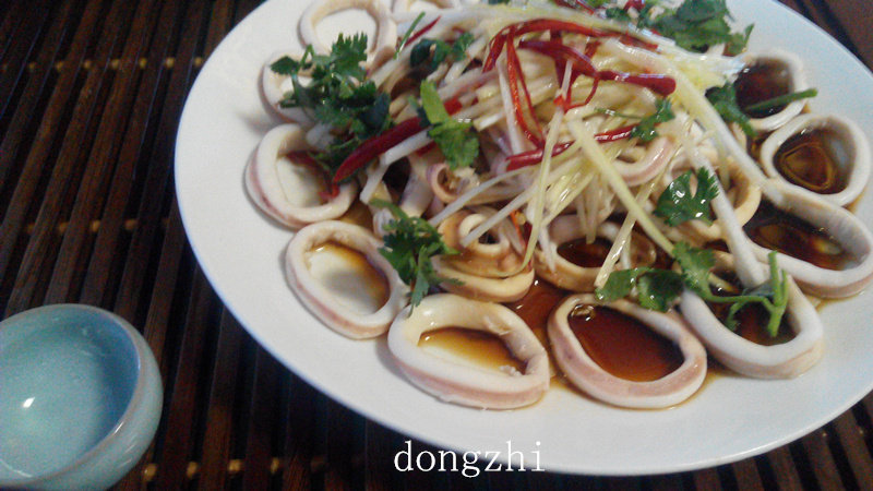 鱿鱼焯水时间不宜过长,油一定要热,否则出不来葱油味,豉油加热后放里也可以,鱿鱼的鲜味和葱香,蒜香融入到一起呗、别有有一番风味。