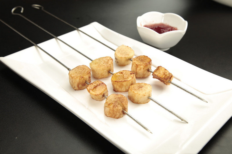 山楂烤香蕉是一道简单美味的甜品,主要利用山楂的酸甜和香蕉的软糯结合。做法大致为:将香蕉切段,与山楂片或山楂糕一同放入烤盘,可适量添加糖或蜂蜜调味,再放入烤箱烘烤至香蕉表面微焦、山楂软化即可。成品口感酸甜软糯,适合作为家庭小甜点。