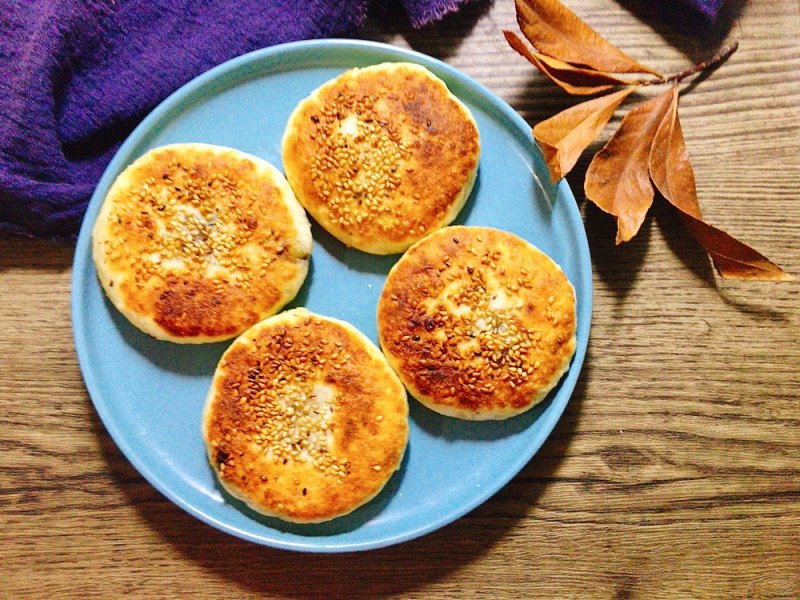 7:锅中加入植物油,放入面饼煎至两面金黄即可。