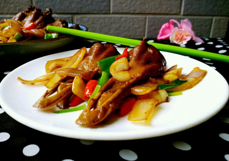 12:再放卤好的鸭头翻炒二三分钟