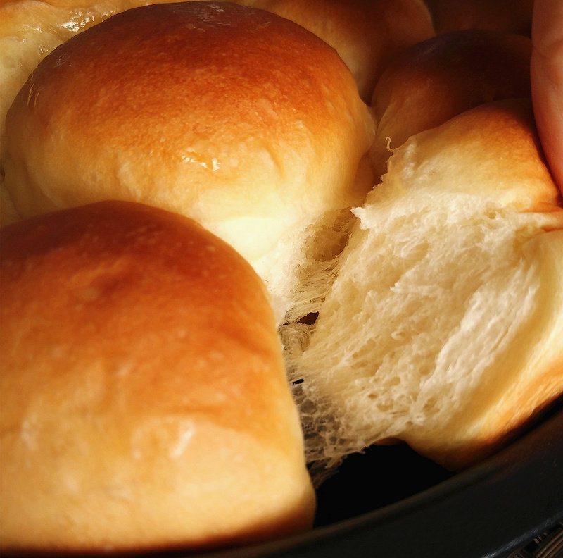 纯牛奶80g;高筋面粉125g;酵母1.5g;糖20g;盐1.5g;黄油15g;