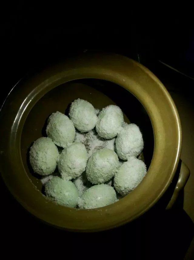 5:所有的蛋蛋都粘上盐粉后,咸蛋胚就做好了。