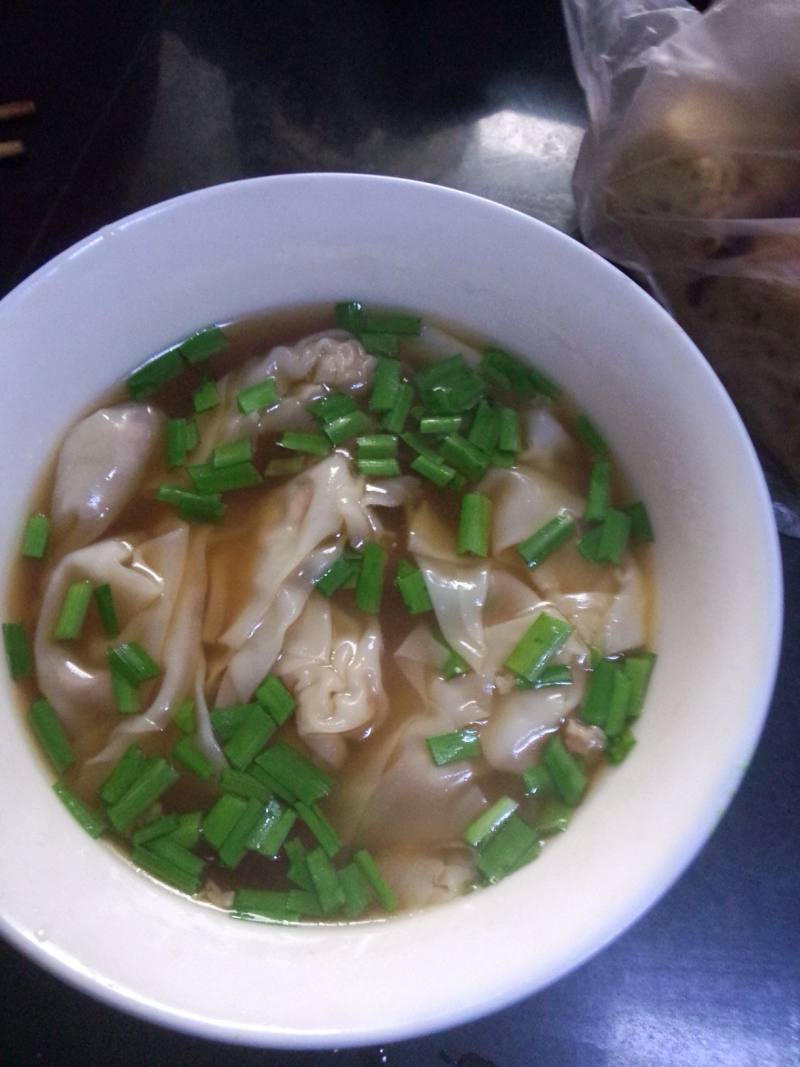 6:碗里事先放上点盐,酱油,鸡精等,一碗热乎乎馄饨可以开吃啦!