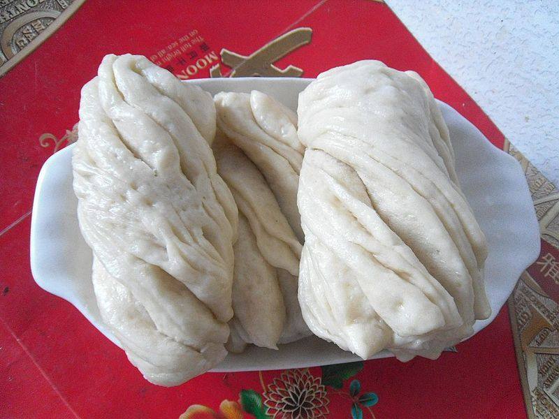 8:两头轻轻一拧,即成“拧劲花卷”的生坯。
