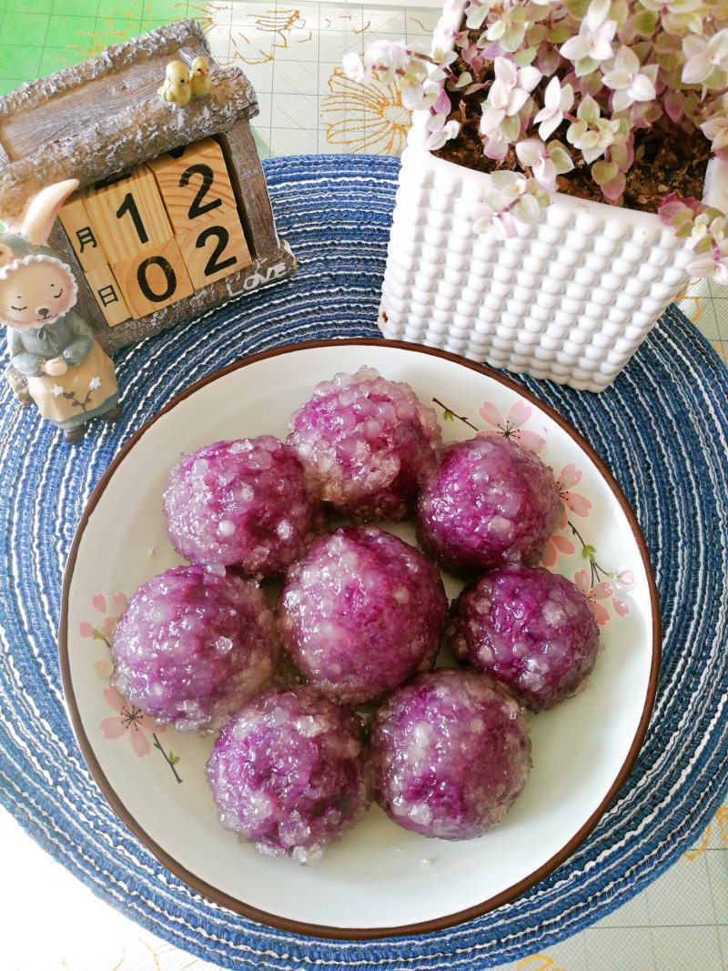 9:蒸好的紫薯糯米球很漂亮!