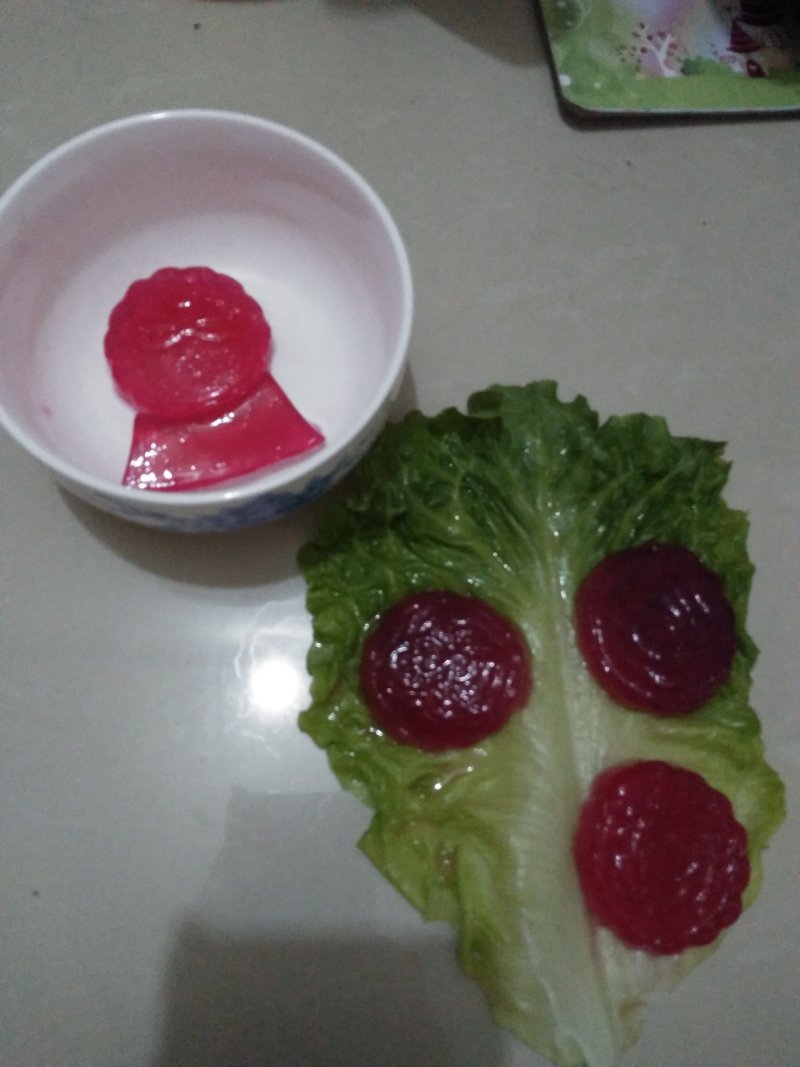 7:放入冰箱冷藏个30分钟最好。红色的是用剩余的西瓜做的