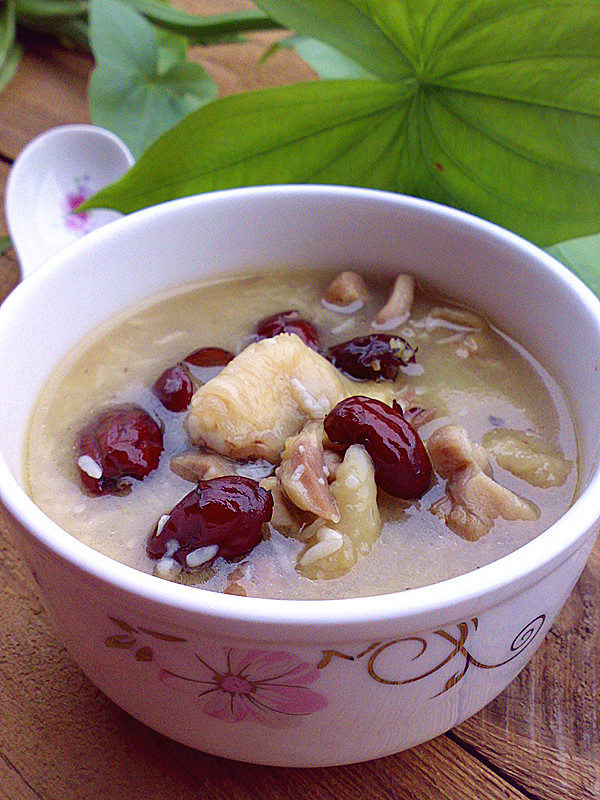 2:小碴子清洗干净放入锅中加入红枣片烧开中火熬20分