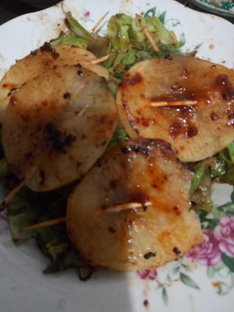 7:先把油菜,蘑菇,洋白菜,生菜先烧烤完。