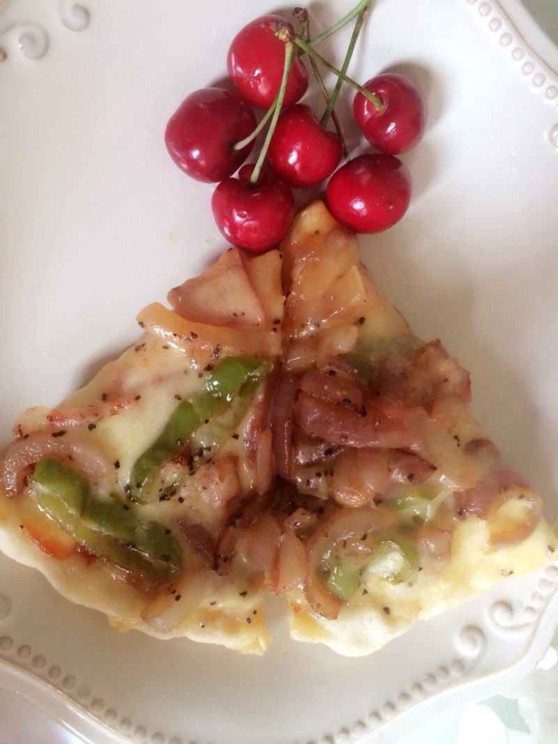 马苏里拉奶酪适量;培根适量;青椒适量;洋葱适量;番茄酱适量;黑胡椒粉适量;