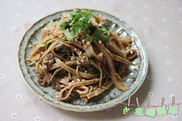 17:莜面上放上黄瓜丝、木耳丝将调料汁浇上,撒上花生碎,香菜搅拌即可。