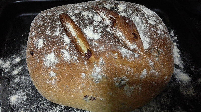 3:和成面团后加入橄榄油继续和面,听到面包机发出蜂鸣音时在加入坚果继续和面发酵。