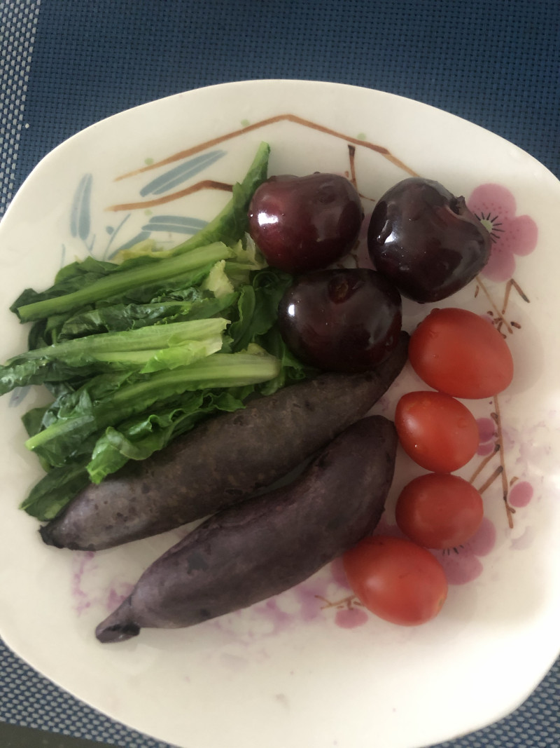 2:紫薯放入微波炉5分钟,记得两分钟后翻一次面。