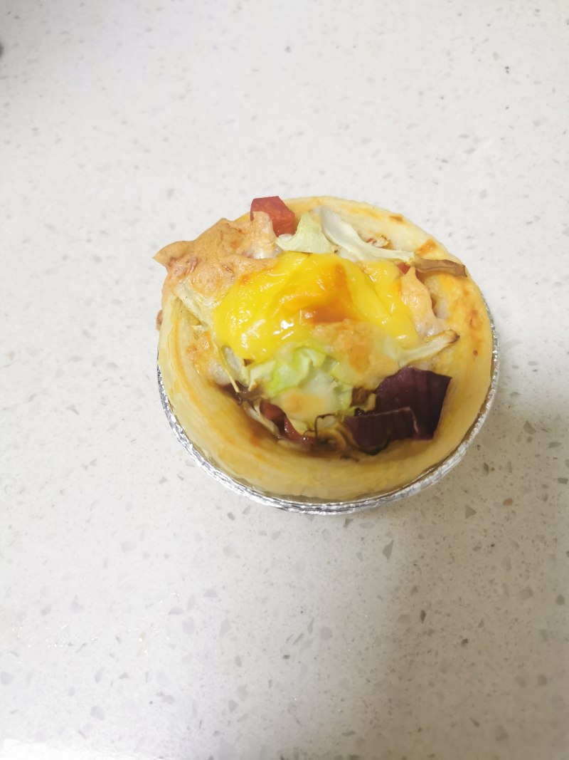 2:蛋挞皮刷一层番茄酱,味重的可以多刷一点或者撒一点点盐粒。