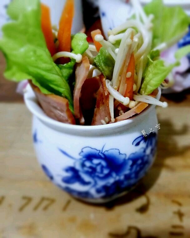 生菜1棵;金针菇适量;胡萝卜适量;芝麻适量;