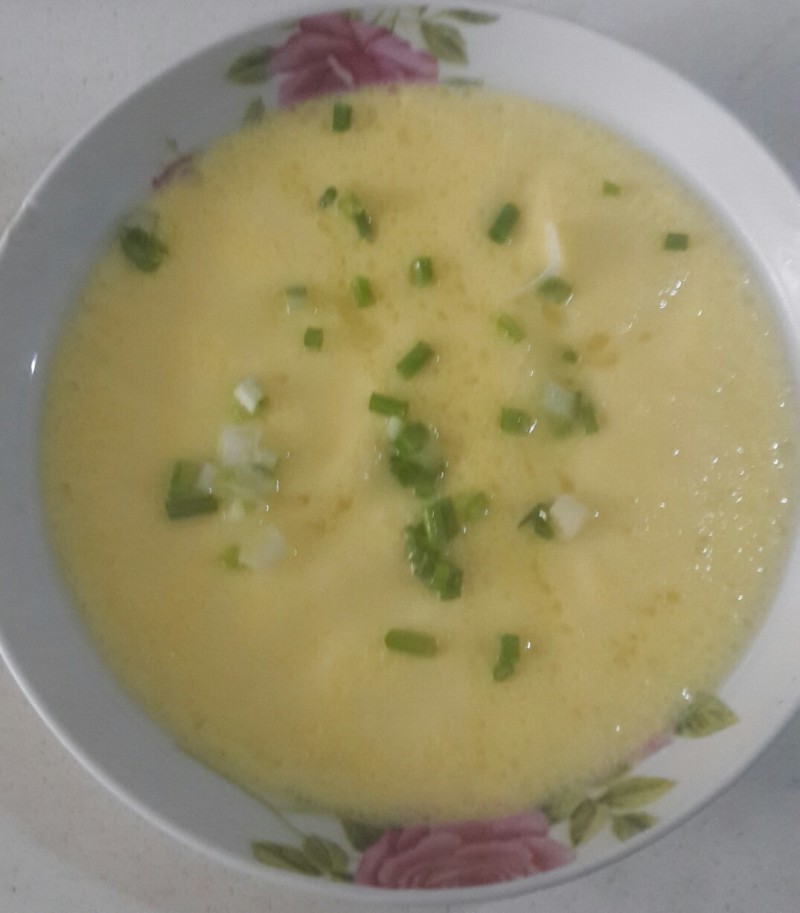 6:出锅撒上葱花,也可放杂酱肉末。(自己喜欢什么就放什么)看吧,够嫩吧!