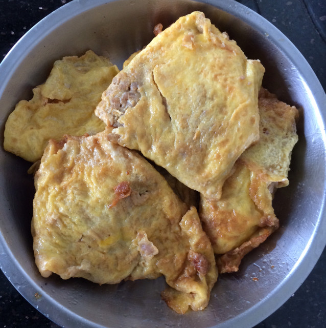 12:勤翻面小火煎炸把水份都煎炸出来(厚的地方用筷子戳下)。