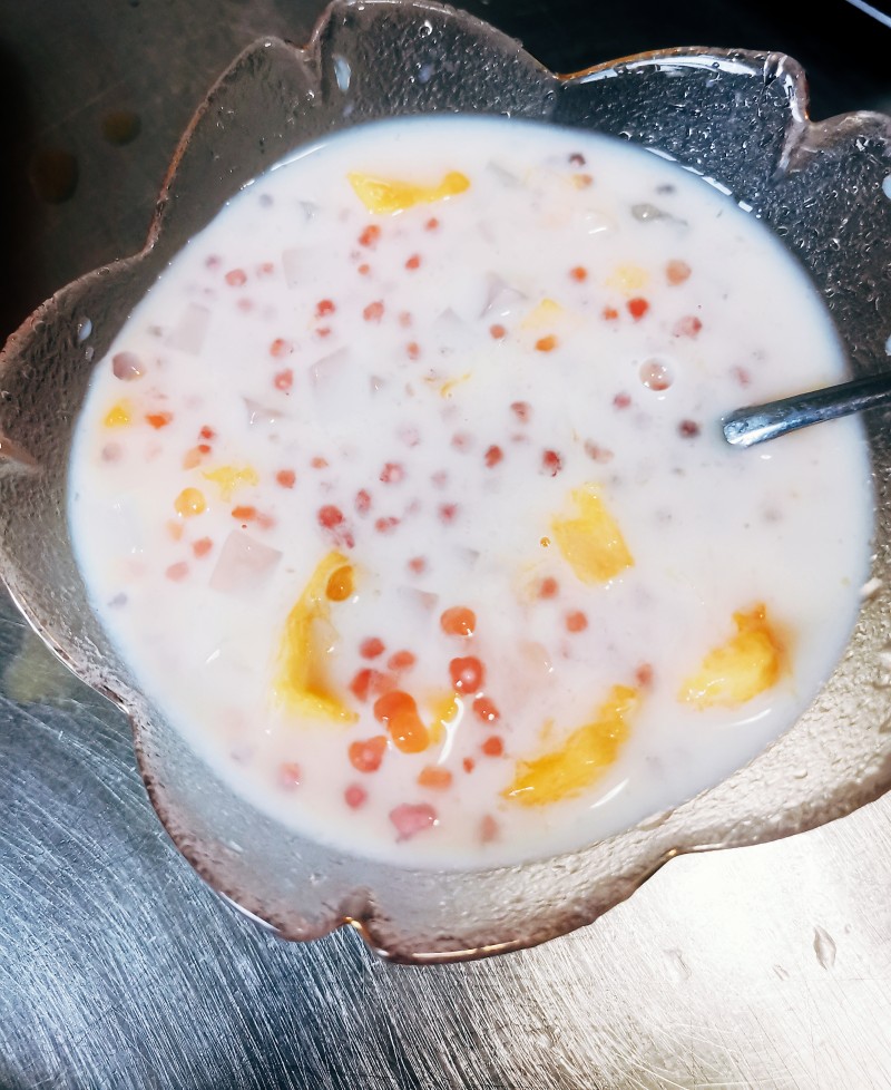 6:煮好的西米加入椰浆,芒果,冰一下就是美味的西米露了。