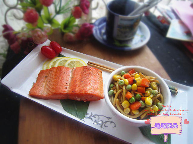 小叨叨:1、以前一直用黑胡椒,这次买了一种进口的黑白红三色混合胡椒,磨出来的味道不错,很有层次感,推荐大家试试。2、三文鱼不用煎的很老,中间的部分半生的口感个人感觉最好。3、图中搭配的焗烤土豆泥可以参看另一篇日志---焗烤培根土豆泥。