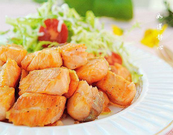 7:高品质三文鱼煎至自己喜欢的熟度。