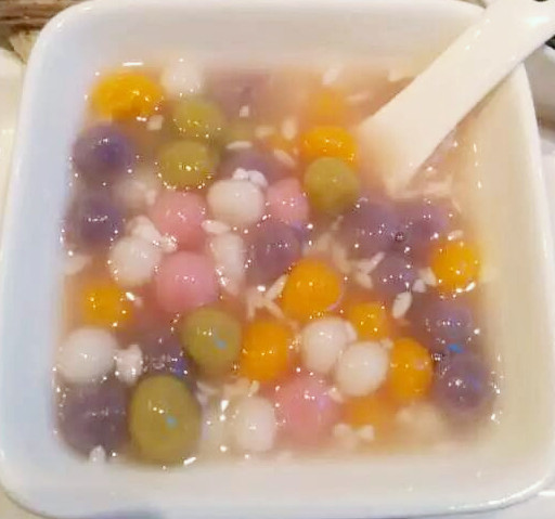 10:煮锅加水烧开,放入五彩汤圆,加入适量醪糟煮至汤圆浮起。加适量白糖稍煮关火。盛入碗中。是不是很讨人喜欢呢?