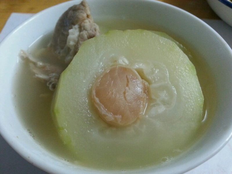 1:节瓜削皮洗净,排骨汆水备用,大瑶柱用水浸泡2小时或更长时间。