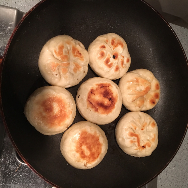 18:平底锅刷油,将做好的生坯放入平底锅,再次醒发15分钟后,小火慢煎。