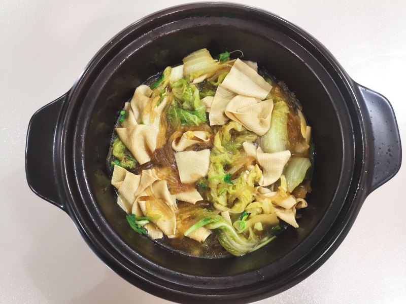 7:砂锅置火上,烧至水沸后改为小火焖至白菜稍稍变软。(约七八分钟)