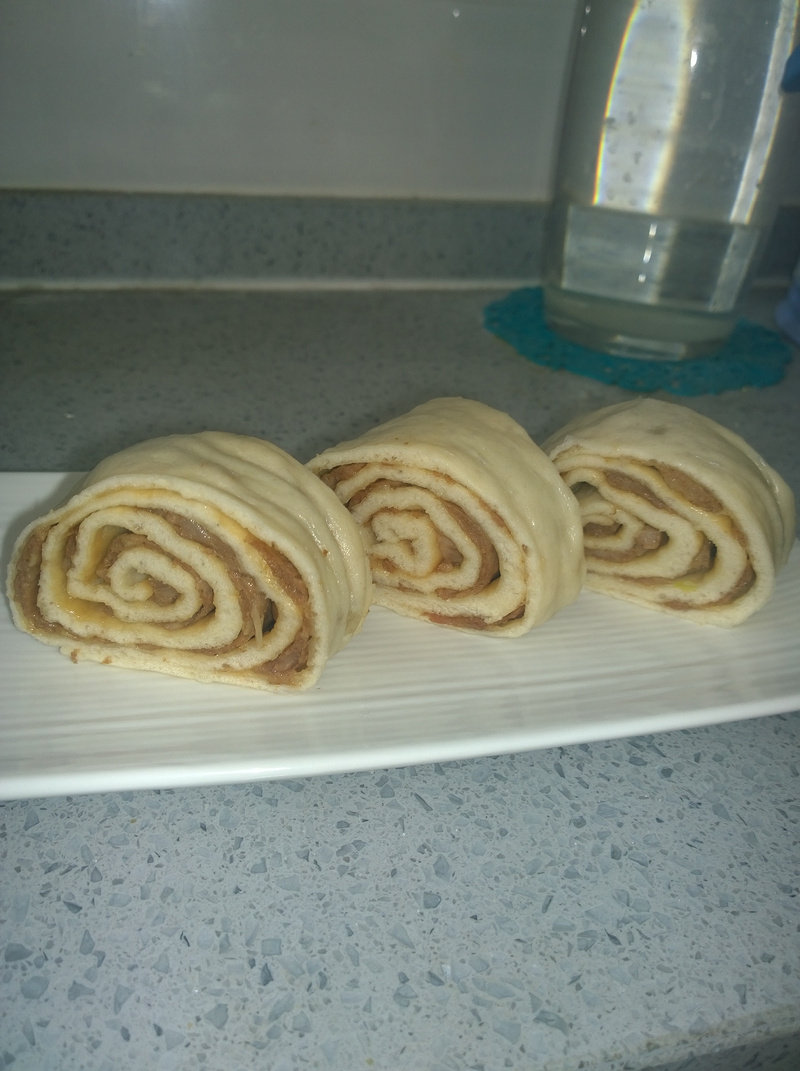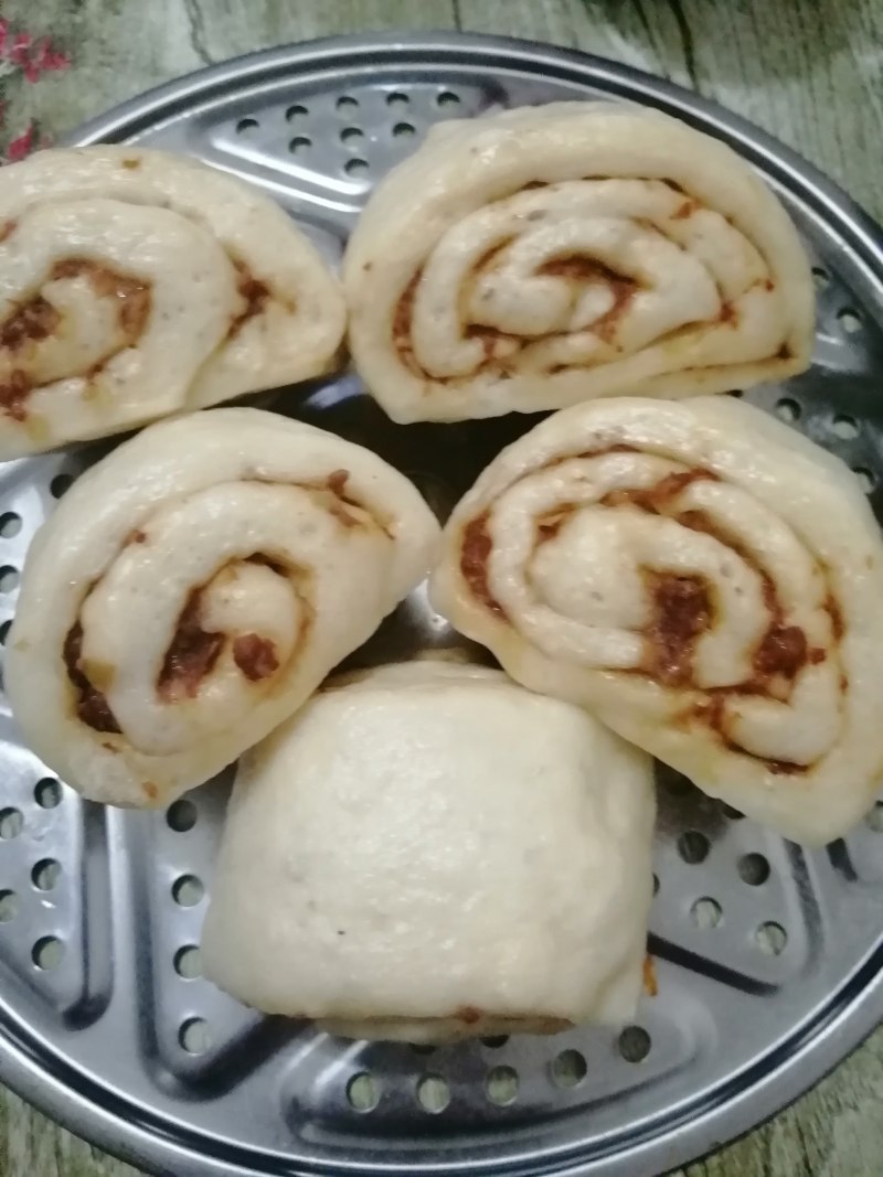 7:卷后,边上封好,放进蒸锅(水提前烧开),10分钟,关火闷5分钟,闷一下是为了定型,闷过的更不容易走型