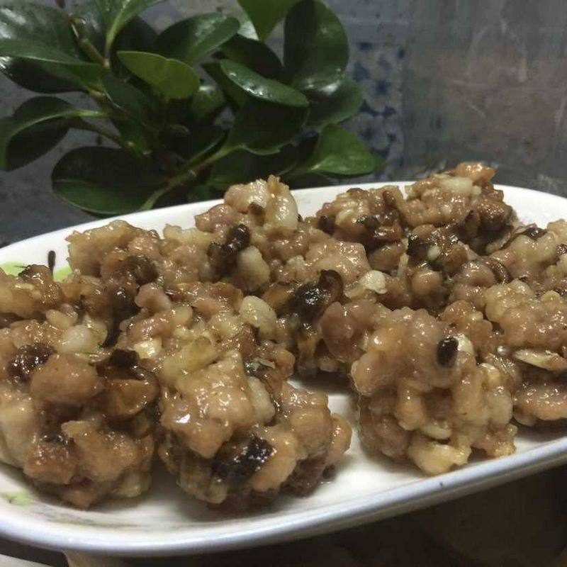 1:芋头子蒸熟,肉泥调味加淀粉,和匀