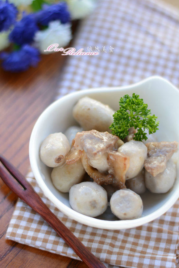 小芋仔500克;猪腿肉250克;淀粉半汤勺;八角2个;