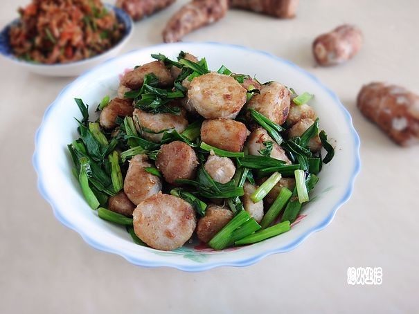 5:下葱叶,淋上香油出锅。