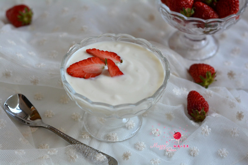 8:酸奶入冰箱冷藏数小时后,用干净的勺子取适量放在杯中,再根据口味将水果丁或者蜂蜜加入其中