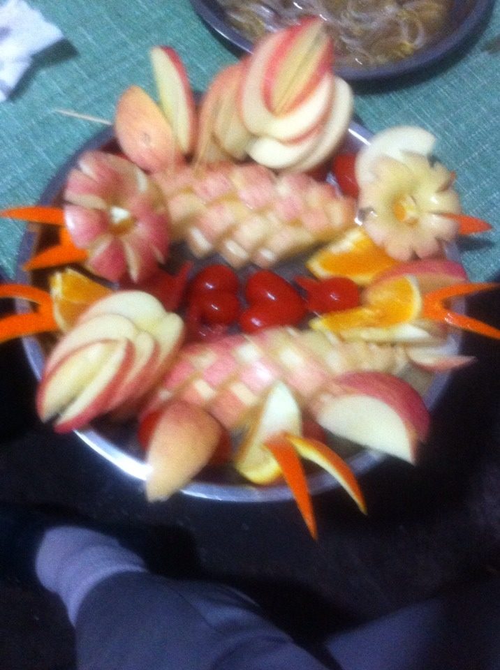 3:水果剥皮,切成比花生稍微大一点点的颗粒。也可以用水果罐头来做。