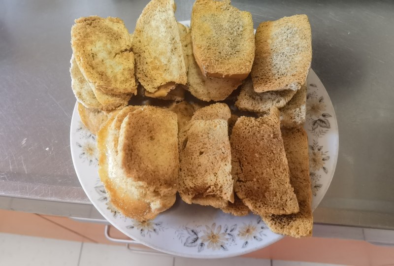 8:盐,十三香,黑胡椒加水,均匀的刷在馒头片上。