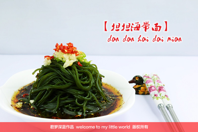 1:主料:海带面1包副料:大蒜、红椒、青椒调料:盐、生抽、糖、香醋、红油、香油