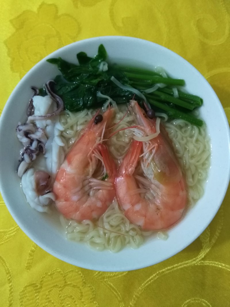 6:面捞出,浇上海鲜汤料。好吃得不留一点汤!