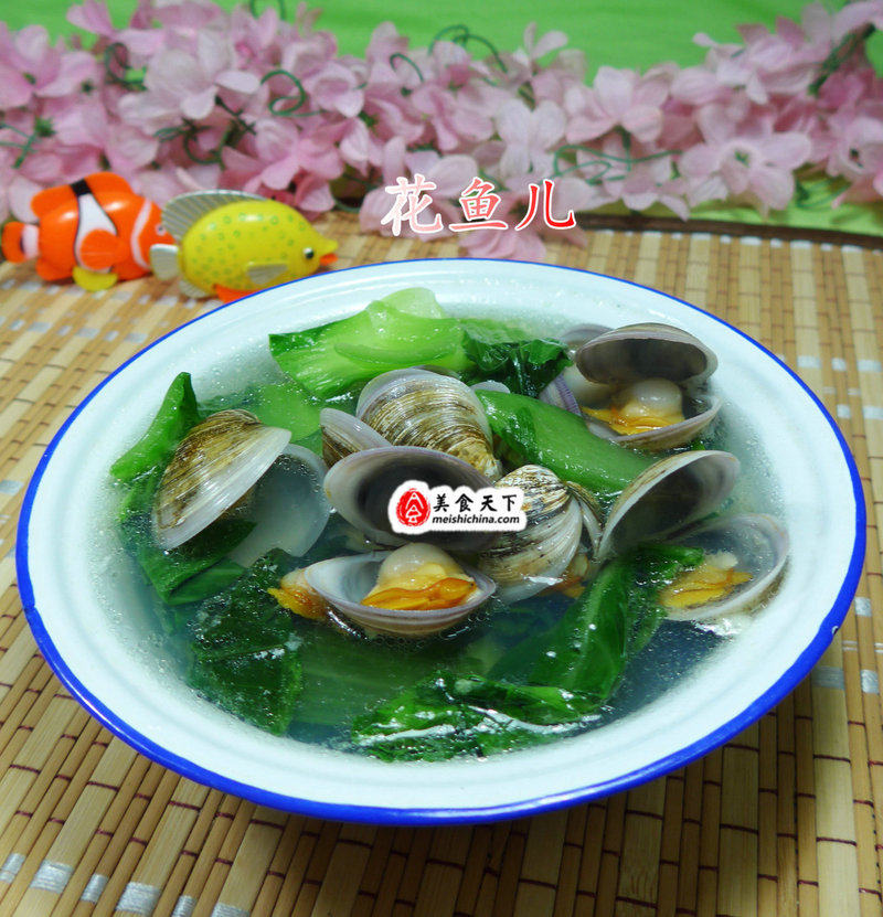 1:食材:青菜(已洗净)、圆蛤(已吐完泥沙清洗)