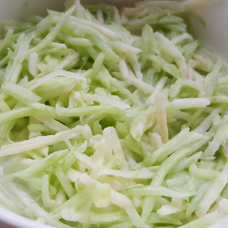 黄瓜苹果最好擦成丝哦,这样酸奶的甜酸更加入味!