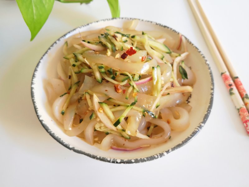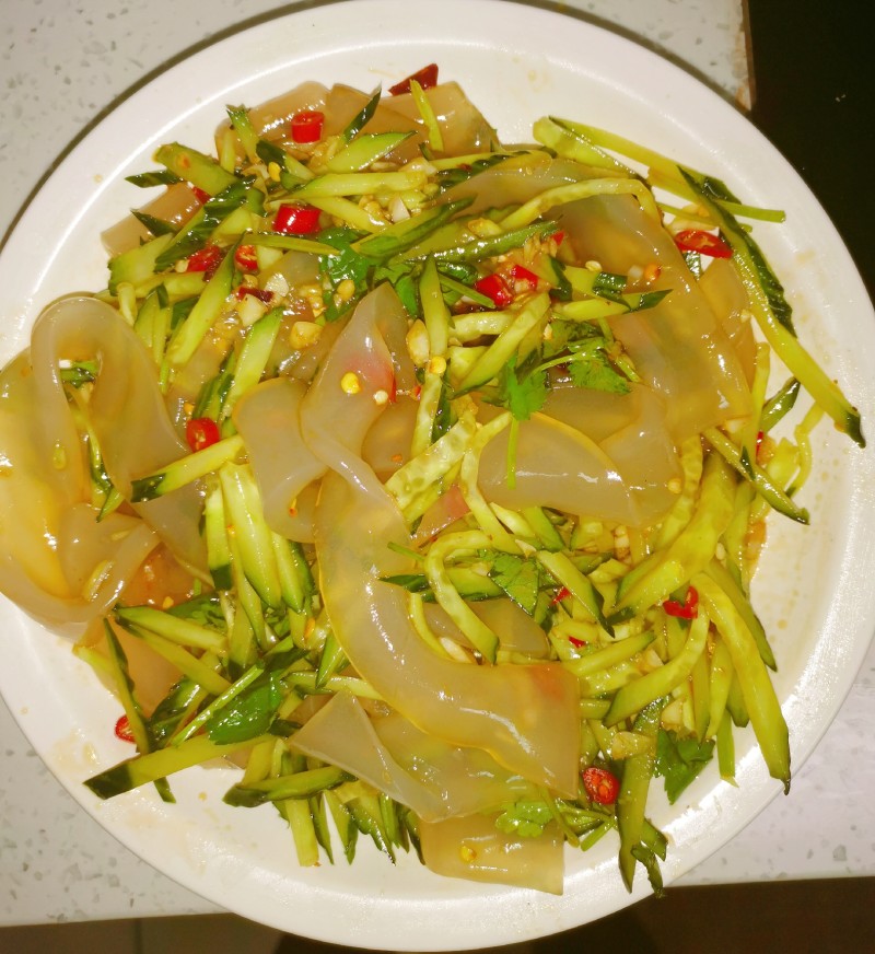 1:原料:黄瓜,洋葱,拉皮,蒜,六月鲜特级原汁酱油,味达美清香米醋。