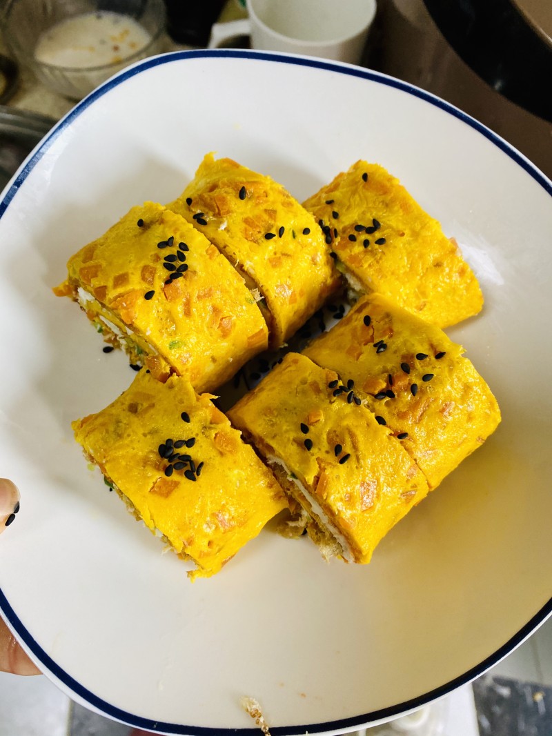 3:选用不粘锅把蛋饼煎至金黄色即可