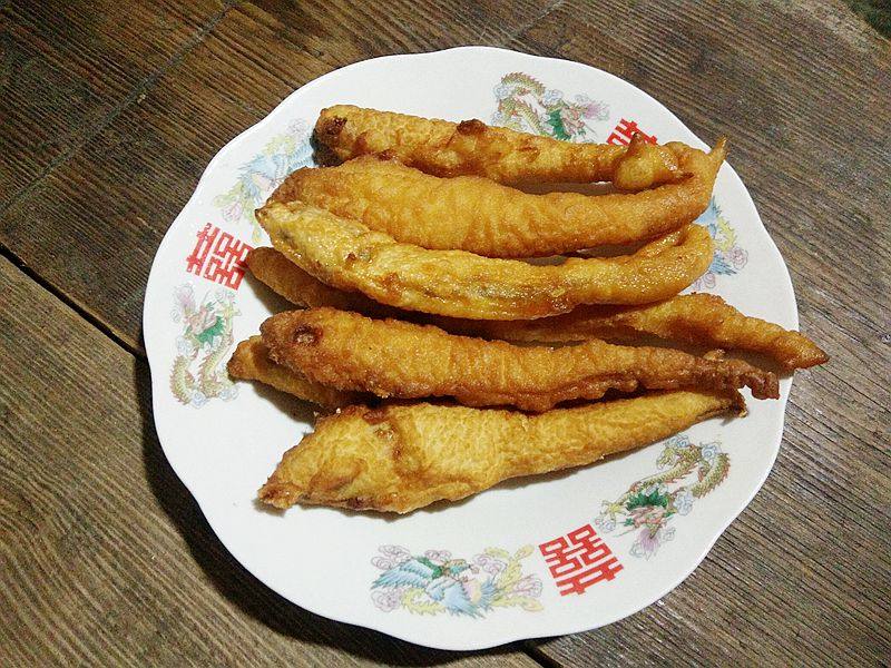 9:炸制金黄色的凤尾鱼面拖鱼,可以蘸生抽或番茄酱食用
