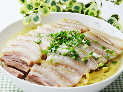 3:咸肉改刀排放上面