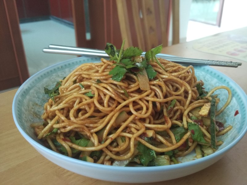 11:用筷子在热干面碗里,搅一搅,稀哩呼噜的吃下去,真是畅快之极。