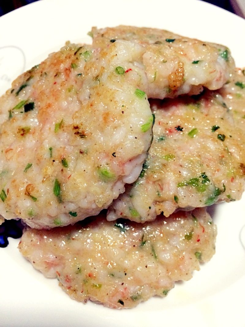 14:最后裹上面包糠后,稍微压压扁,就是虾饼半成品了,做的量大可以放冰箱冷冻保存