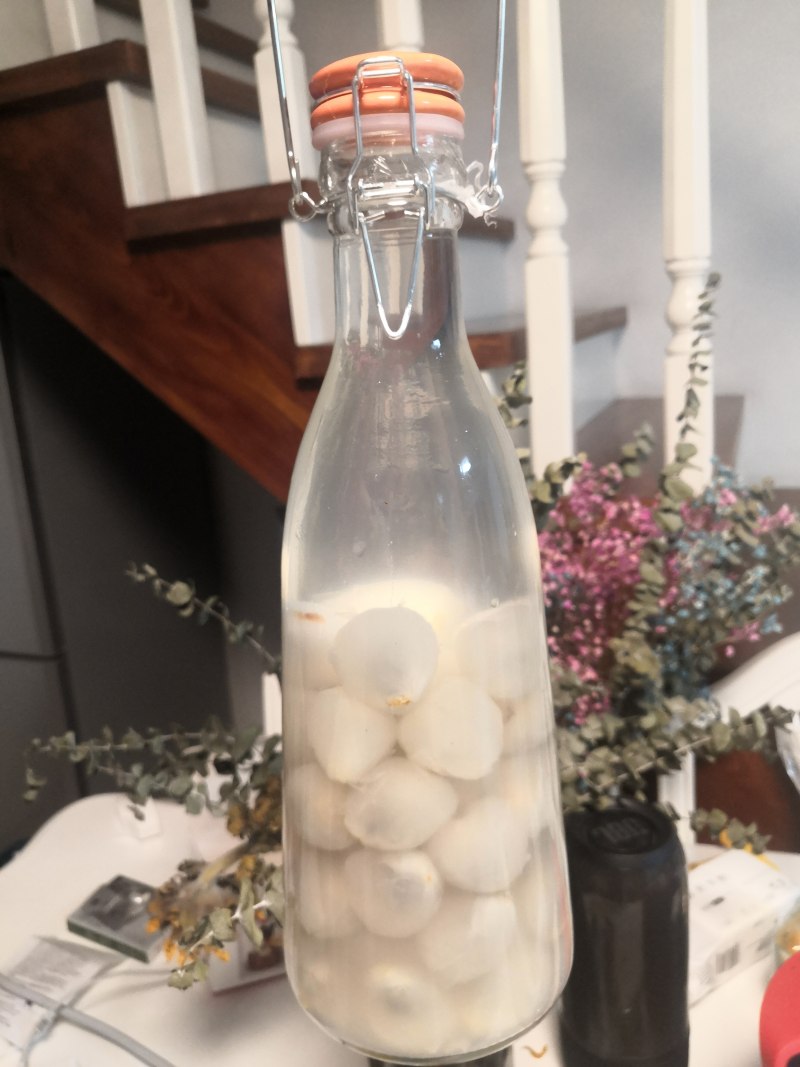 2:准备一个干净的瓶子,往里面放一点酒,然后搅匀后倒出。