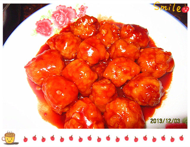 13:最后把炸好的肉丸倒入锅中,调点水淀粉,出锅时再烹点白醋即可